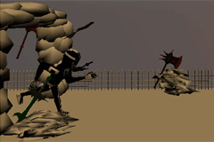 Alergi printr-un fort ce este pregatit de lupta. Nu pare sa te urmareasca nimeni desi fugi ca nebunul. Trebuie doar sa sari peste gropi, alte capcane nu mai sunt. Daca strangi suficient bani de aur vei putea ...