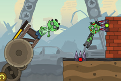 Lumea a fost curata de zombi, ei au fost prinsi iar acum cineva, adica tu, trebuie sa se ocupe sa-i omoare. Ai un lansator ce arunca zombi. Ca sa termini nivelul trebuie sa infigi cate un omulet verde in ...