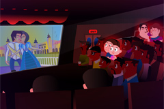 Esti vedeta intr-un film si ai ajuns la scena sarutului insa in sala de cinema sunt multi copii. Cu un pic de indemanare te poti pupa sa sa vada copiii. Saruturile trebuie sa fie pe ascuns pentru a nu supara ...