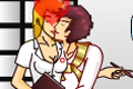 Doi colegi de clasa s-au indragostit si vor sa se sarute in ora. Fii atent la profa sa nu te vada in acest joc cu pupat.