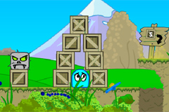 Omuletul albastru are nevoie de tine pentru a se apara. Acopera-l cu cutii pentru ca nimic sa nu poata sa ajunga la el iar pe monstri trebuie sa-i dai de pamant pana mor. Cand vine elicopterul, vei fi ...