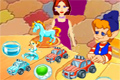 Imbraca copiii dadacei cu haine frumoase de casa. Pe langa haine vei putea pune si jucarii.
